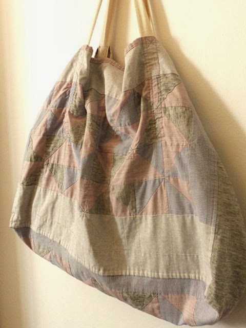Of course, some making does get done, but it's of the necessary rather than frivolously pleasurable and playful kind. One such necessary make has been this pinwheels laundry bag, made from various linens and and a couple of old shirts I managed to persuade Patrick he no longer needs. Since our washing machine broke we decided to take advantage of the on-site launderette in our block of flats. The absence of a machine rattling away in the kitchen, damp clothing draped over makeshift driers, and disputes about whose turn it is to do the laundry/put things away, has been such a pleasant surprise that we've decided not to bother replacing our old machine. However washing our dirty linen in public can be embarrassing, and I certainly don't want our neighbours getting a peek at my smalls through transparent Sainsbury's carrier bags (I suspect they're not too keen on seeing them either).